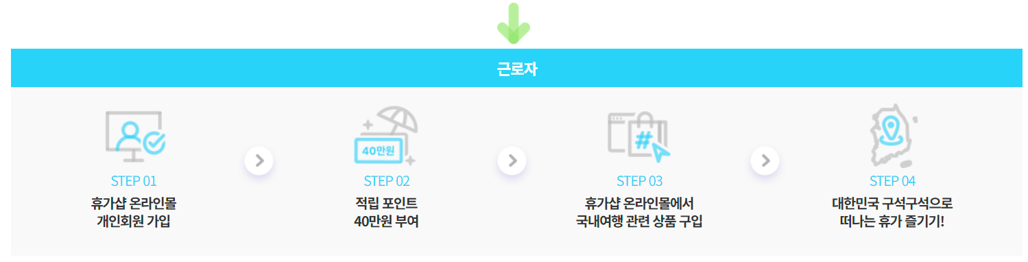 ▶국내 여행 경비 지원: 근로자 1인당 최대 40만 원의 국내 여행 경비 마련.