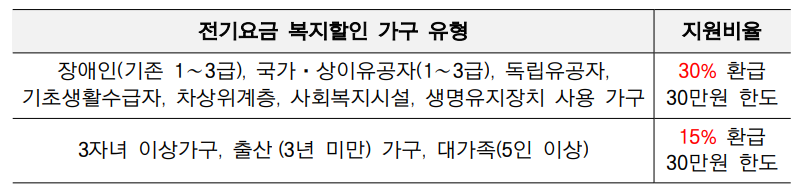 이와 같은 대상자는 한전에서 운영하는 전기요금 복지할인 가구에 해당하는 경우 지원받을 수 있습니다.