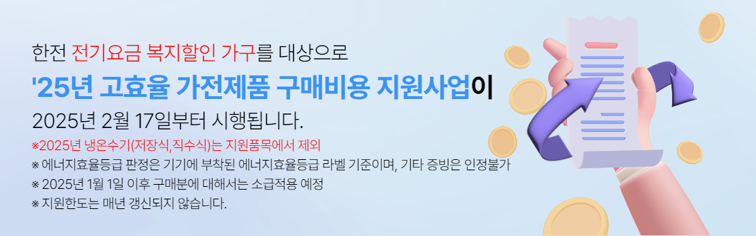 에너지 비용 부담을 줄이고 친환경 가전제품 보급을 확대하기 위한 한전 고효율 가전제품 구매지원사업이 2025년에도 시행됩니다.