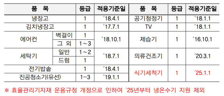 1. 지원 대상 가전제품 (총 11개 품목)