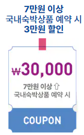 숙박세일 페스타에서 3만 원 할인쿠폰을 선착순으로 제공합니다.