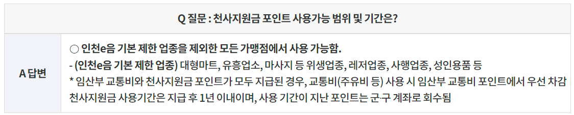 ▶천사지원금은 현금이 아닌 인천사랑상품권(인천e음 포인트)로 지급됩니다.