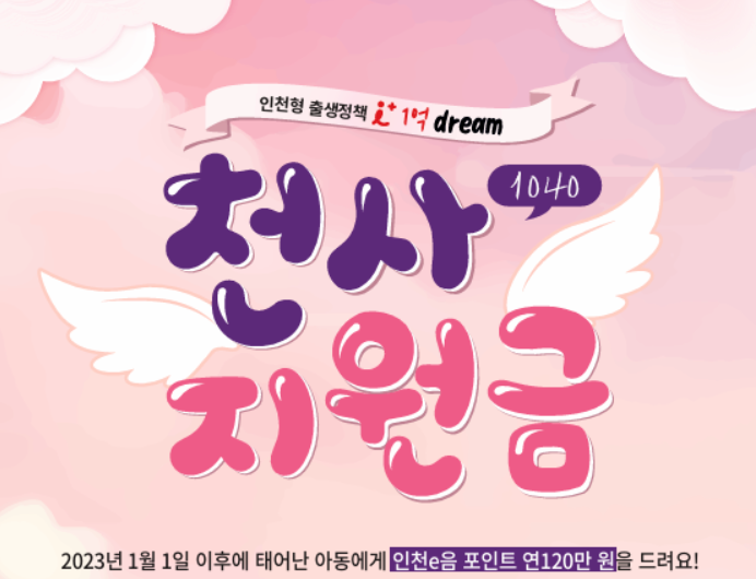 천사지원금(1040 지원금)은 인천시가 1~7세 아동을 대상으로 연 120만 원씩 지급하는 양육지원 정책입니다.