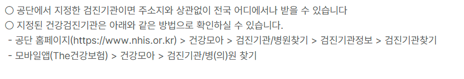 ▶국민건보공단 누리집의 검진기관 찾기 메뉴 이용