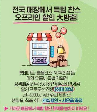 ▶롯데마트, 홈플러스, NC백화점 등 대형마트에서는 소상공인 제품 특별 판매전을 진행하며, 다양한 생활용품과 식료품을 저렴하게 구매할 수 있습니다.