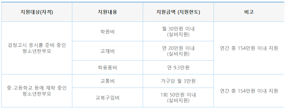 ▶아동교육지원비: 저소득 한부모가족의 중·고등학생 자녀에게는 입학금과 수업료가 지원됩니다.