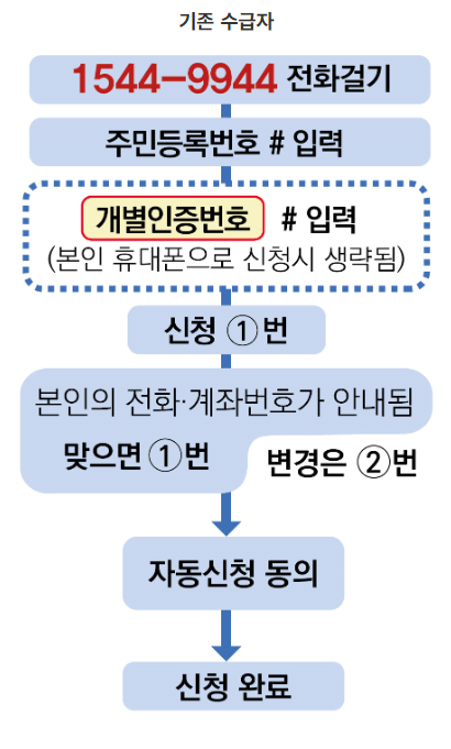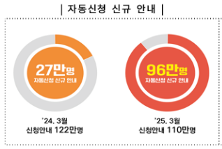 단, 신청 요건(소득, 재산 기준 등)을 충족하지 못하면 자동신청이 되지 않습니다. 자동신청 대상자는 신청 완료 후 ‘자동신청 완료 문자’를 받게 됩니다.