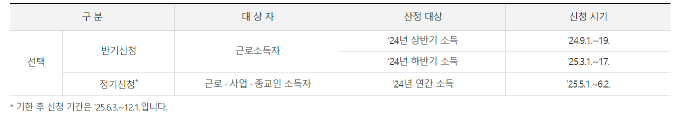 또한, 근로소득 외에도 사업소득이나 종교인 소득이 있는 경우에는 이번 신청 기간이 아니라 5월 1일부터 6월 2일까지 진행되는 정기 신청 기간에 신청해야 합니다.