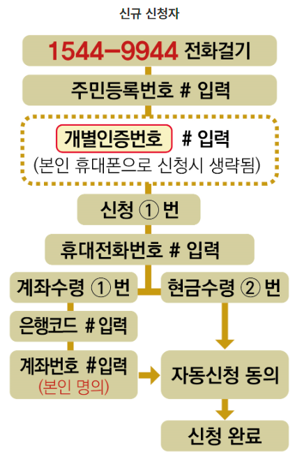 ▶국세청 자동응답전화(1544-9944)에 전화하여 안내에 따라 신청합니다.