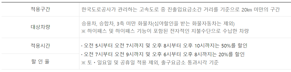 ▶하이패스 이용 필수: 대부분의 할인제도는 하이패스를 통해 자동 결제할 때 적용됩니다.